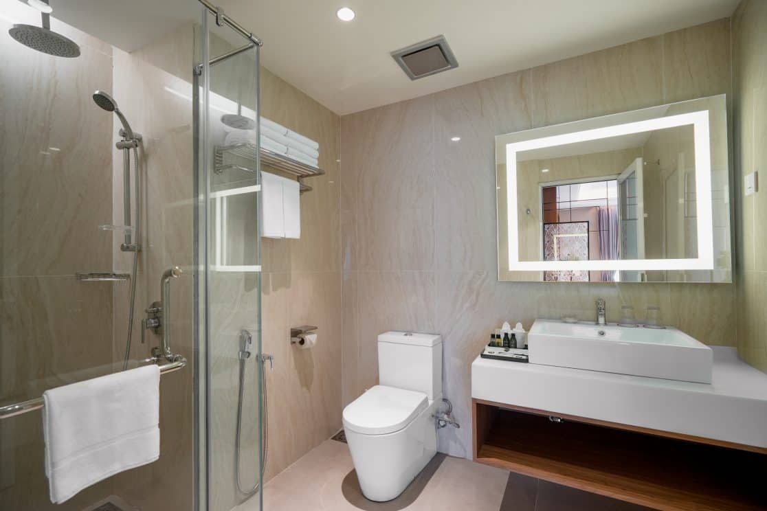 The Junior Suite boasts a cosy atmosphere equipped with a king-sized bed and 50-inch flat screen television. Bathrooms are equipped with standard amenities such as shower gel, shampoo, conditioner, toothbrush and vanity kits.