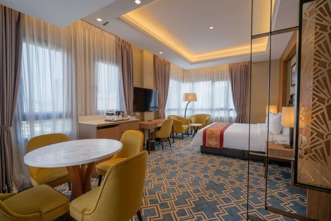 Fancy a royal stay at MPalace? The Palace suite is just the place for you. Enjoy a comfortable night’s sleep on a luxurious king-sized bed. It also comes with a 50-inch flat screen television. Bathrooms are also equipped with standard amenities such as shower gel, shampoo, conditioner, toothbrush and vanity kits.